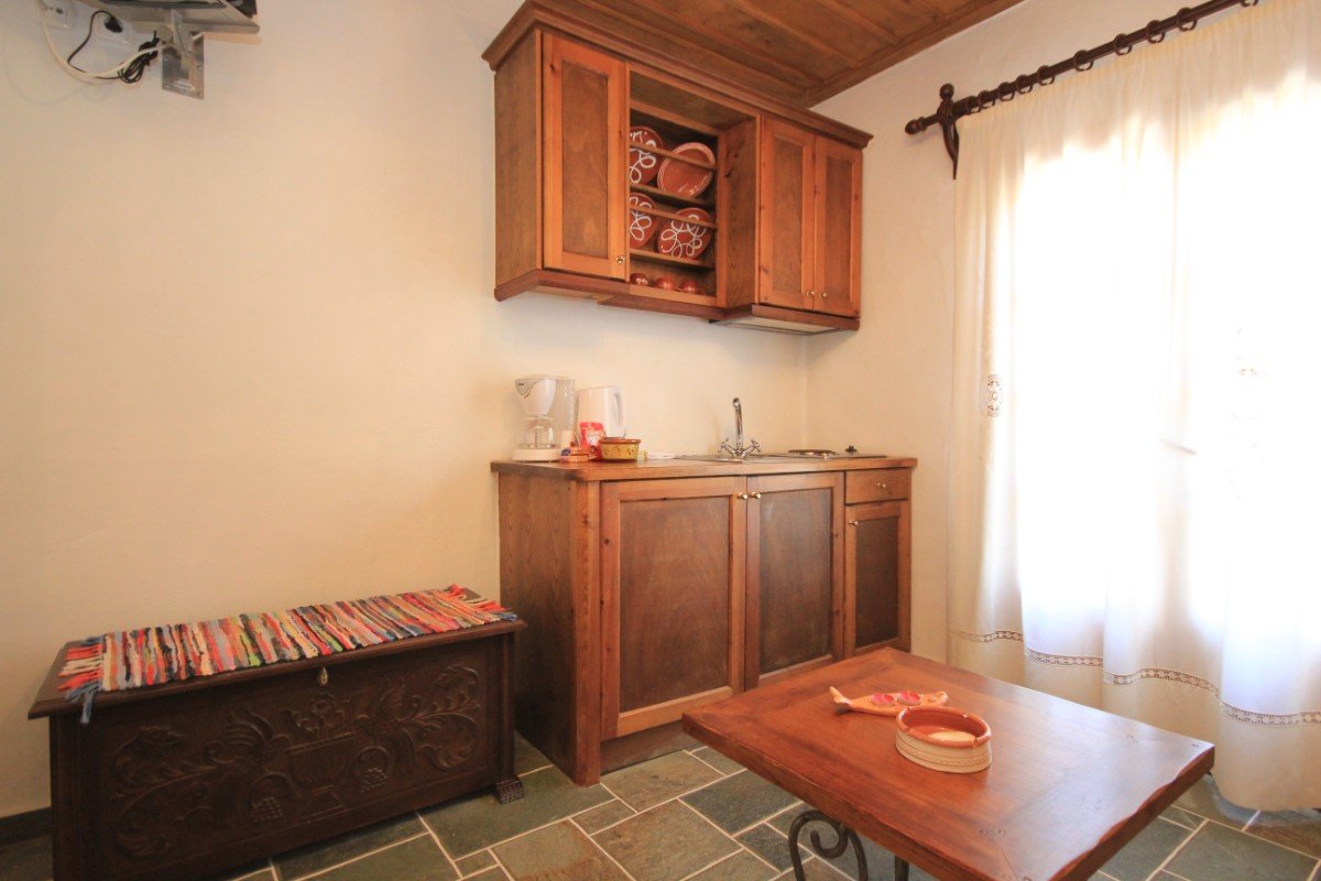Les Junior studios ont une superficie de 20 mètres carrés et dispose d’un lit queen size, des sols carrelés, des plafonds en bois, des meubles artisanaux traditionnels et d’une cour de 6 à 12 mètres carrés avec des meubles d’extérieur et une chaise longue.